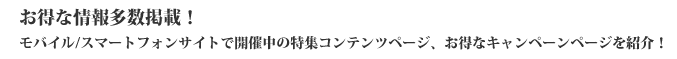 こちらではモバイル/スマートフォンサイト限定のお得なページをご案内致します。